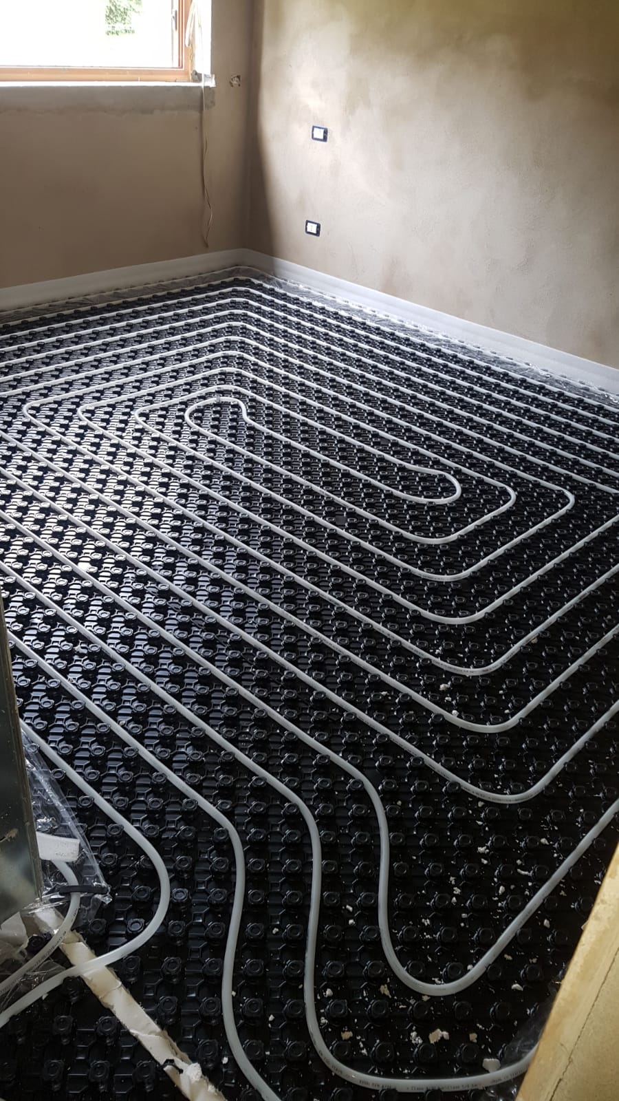 Riscaldamento tradizionale con radiatore, pannelli radianti a pavimento.